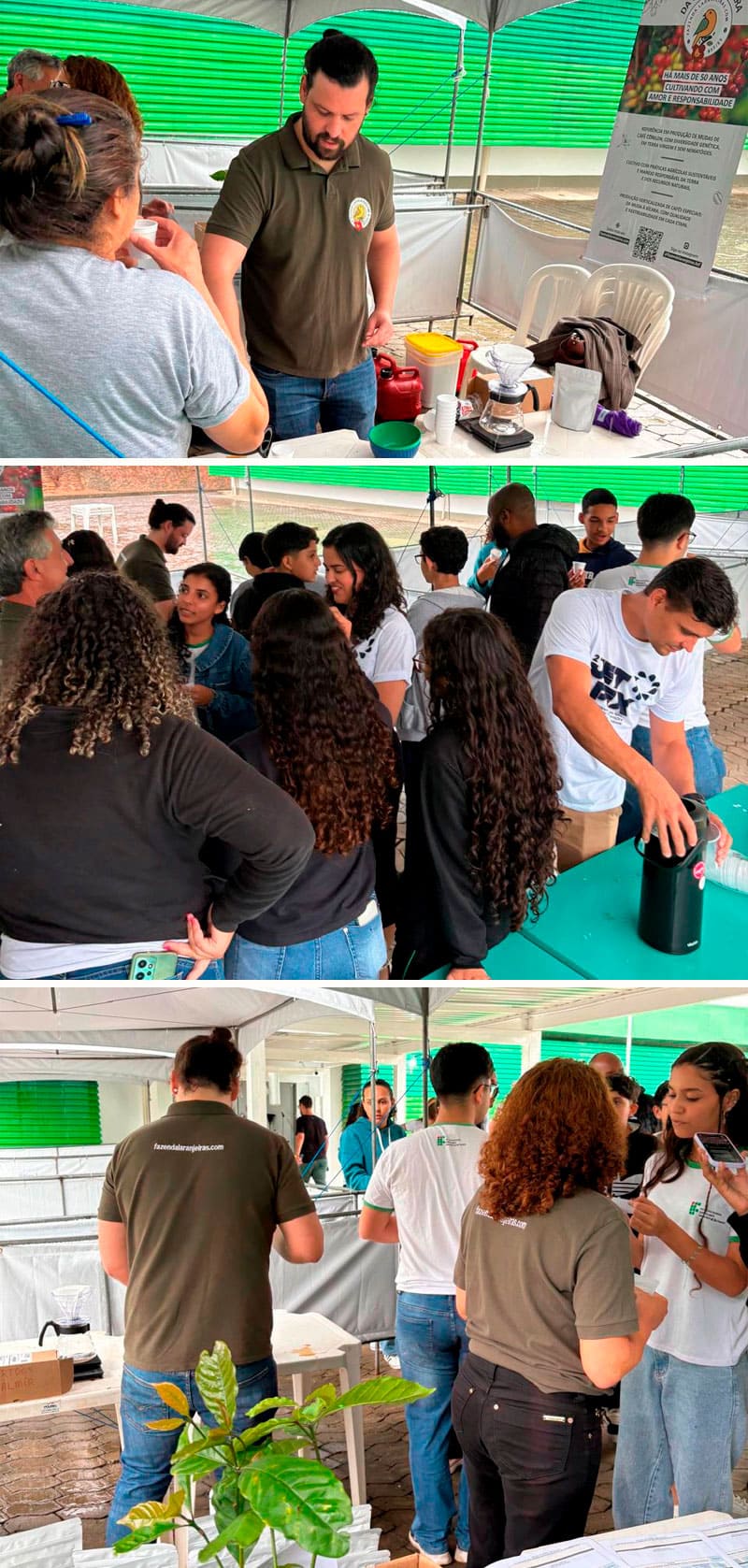 Além da palestra, a Fazenda Laranjeiras marcou presença na I Feira de Empreendedores do IFES, onde expôs mudas de café conilon, lotes de café especial com laudos de análise sensorial do Incaper e apresentou sua marca de café conilon especial torrado e moído, em fase final de desenvolvimento. O café foi preparado na hora e servido aos visitantes, que também receberam pequenas amostras para degustação.
